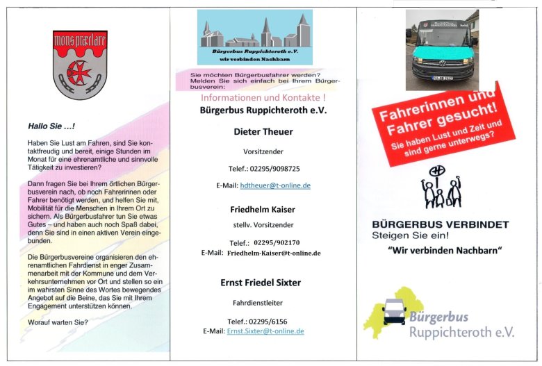 Nebenorte, unserer Gemeinde Ruppichteroth, Mobilität zu gewährleisten. Der Verein verfolgt ausschließlich gemeinnützige Zwecke.